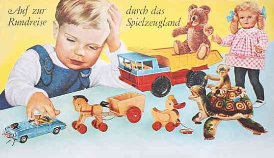 | |  | | "Wir fahren ins Spielzeugland", Spielzeugkatalog (wohl 1964) | | "Kinderwünsche werden wahr" - "Neckermann macht's möglich" (1962)