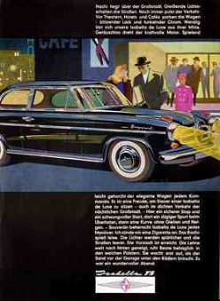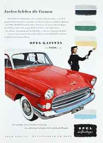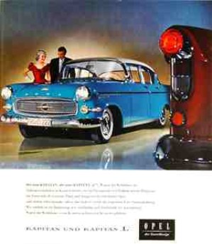 Bei Opel kann man sich dem allgemeinen Trend zum Luxus ebenfalls nicht verschließen. Dort ist 1956/57 das Modell Kapitän „der Star seiner Klasse“