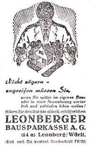 Leonberger Bausparkasse - "Nicht zögern - zugreifen müssen Sie, wenn Sie später im eigenen Haus oder in einer Neubauwohnung wieder froh und zufrieden leben wollen!"
