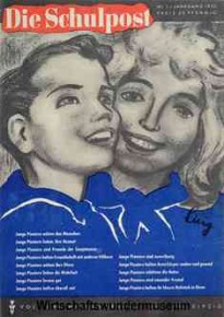| Die ABC Zeitung - "Alles für den Frieden!", Themen z.B. "Der erste Geburtstag der Deutschen Demokratischen Republik", "Mit den sowjetischen Pionieren in die Ferienlager" | | Die Schulpost - Titel: "Wir grüssen die Frauen der ganzen Welt, die für unsere Zukunft arbeiten"