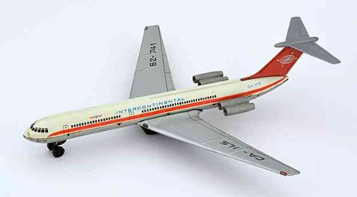 | | „Hungarian Air Transport“, Blechflugzeug mit mechanischer Funktion (Propeller drehen sich), E. Flimlemez Ungarn, 1960er Jahre |  | | „Intercontinental“, Blechflugzeug, VEB Plasticart Annaberg-Buchholz, DDR, 1980er Jahre |