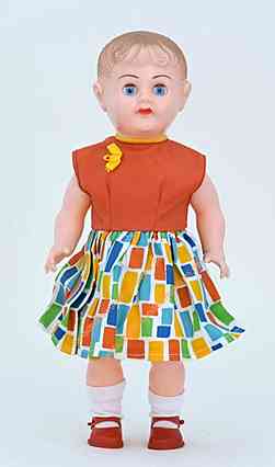 | | "Steffi", die "DDR-Barbie". Für "Steffis" tollen Malimo-Hosenanzug (sowie für vieles andere mehr und nicht zuletzt für die ungezählten aussagekräftigen Infos zum DDR-Alltag) an dieser Stelle 1000 Dank an Christel aus Nordhausen!! | | In der Sowjetunion hergestellte Billigpuppe - "Russenpuppe"