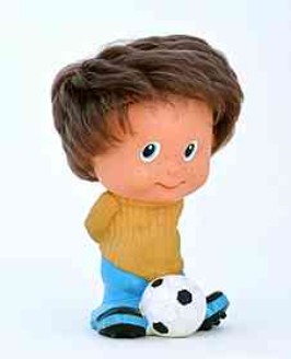 | | Fußballer, Höhe 20cm, Trikot mit Emblem vom 1.FC Magedeburg. Erst wollte ich die recht schmutzigen Beine der Spielzeugpuppe säubern - dann hab' ich's so gelassen. Wirkt so schön authentisch...