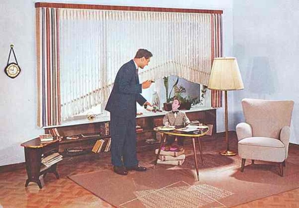 "Herr Wohnlich" - / guter Geist des Heimes / (und Kernpunkt jedes spät'ren Reimes) / greift schicksalhaft in das Geschehen - / und bittet beide, mitzugehen." (Aus einem Möbelkatalog von 1958)