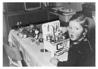 Ein Mädchen spielt Weihnachten mit seinem neuen Spielzeugherd*