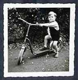 Deutsch-deutsche Befindlichkeiten: Erinnerungsfoto vor Stacheldraht - mit dem Motorroller Heinkel "Tourist" an der Zonengrenze*