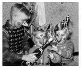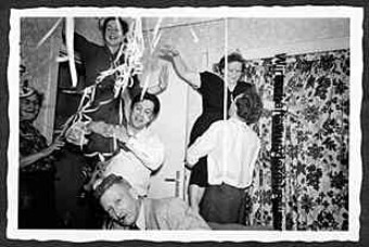 "Geburtstag v. Mama"    Partyspiel - Streichholzschachtel von Nase zu Nase - "Mein Geburtstag 24. Juli 1956" - Mehr Bilder von Familienfeiern / Partyspielen in den 1950er Jahren HIER