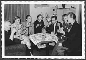 Freizeitgestaltung in der vor-Fernseh-Ära: Man spielt Gesellschaftsspiele (Denk fix) und...