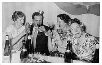 | |  | | | Junggesellinnenzimmer | | Mann mit Graetz Radio "Melodia" und einer Flasche "Advocat"