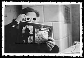 | | Beim Betrachten einer 3D-Abbildung im DDR-Jugendmagazin Fröhlich sein und singen ("Frösi")