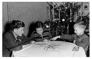 | | "Für Angela brachte der Weihnachtsmann dieses Puppenhaus, selbstgebaut bei Papa und Mama, mit Licht- und Waaseranlage." |