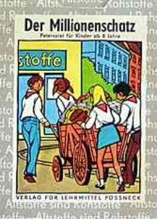 Ein "Peterspiel für Kinder ab 8 Jahre" - Aus der Spielanleitung: "Liebe Pioniere und Schüler! Wer verbrennt freiwillig Fünf- oder Zehnmarkscheine? Wer wirft sein Geld zu Fernster 'raus? Niemend, wirklich niemand? Doch wie ist das mit denen, die achtlos ihre Altstoffe wegwerfen? Hand aufs Herz, bringt ihr schon alle Zeitungen, Flaschen und Gläser zum Altstoffhandel? Damit ist auch schon gesagt, um was für Millionen es bei unserer Schatzsuche geht." - Herausgeber: VVB Altrohstoffe - Verlag für Lehrmittel Pössneck (1975)