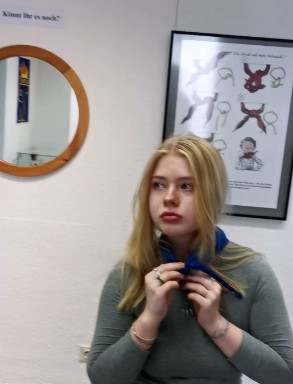 Ausstellung im Museum Petersberg: Mitmachstation "Halstuch binden"