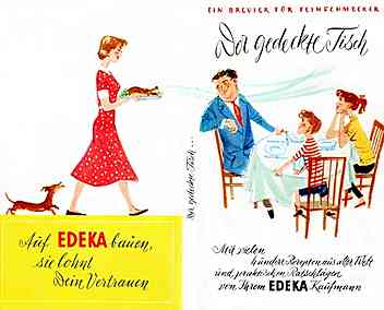 "Auf EDEKA bauen, sie lohnt Dein Vertrauen." - Der gedeckte Tisch - "Mit vielen hundert Rezepten aus aller Welt und praktischen Ratschlägen von Ihrem EDEKA Kaufmann" (1958)