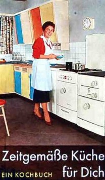 Vermehrt erscheinen hingegen Rezeptsammlungen mit Titeln wie "Schnellmenüs", "Das Schnellkochbuch für Feinschmecker" oder "Was koche ich heute - erprobte Rezepte für berufstätige Frauen, schmackhaft und schnell",  die dem Umstand Rechnung tragen, daß in der Hochzeit des Wirtschaftswachstums mit annähernder Vollbeschäftigung nun immer mehr Frauen halb- oder ganztags arbeiten gehen, um zur Anschaffung von neuen Möbeln, Küchengeräten oder einem Auto beizutragen und folglich weniger Zeit für die Zubereitung der Mahlzeiten aufbringen können.In den 50ern ist häusliche Gemütlichkeit im Kreis der vertrauten Familie das vorrangige Bedürfnis, wenn es um die Feierabendgestaltung geht. Die Freizeit ist aufgrund der langen Wochenarbeitszeit von durchschnittlich 49 Stunden (1955) knapp bemessen. Dennoch geht man häufig ins Kino und auch Partys nach amerikanischem Vorbild kommen derart in Mode, daß sich bald einer regelrechte Partykultur entwickelt. Spielen sich diese Aktivitäten unter freiem Himmel im Garten ab, steht das aus US-Filmen bekannte Barbecue im Mittelpunkt. Oder auf deutsch:es wird gegrillt. Finden gesellige Treffen innerhalb des Hauses statt, empfiehlt es sich, "so viele Zimmer wie möglich auszuräumen, Sitzgelegenheiten aufzustellen und auf aneinandergestellten, unbedingt von weißem Tischtuch bedeckten Tischen ein kaltes Büfett aufzubauen". Dieses kann von der Hausfrau vorbereitet werden, sodaß sie am Abend "nett angezogen, ruhig und ohne Sorge den Gästen und auch sich einen Genuß verschaffen" kann. Sie muß nicht länger auftragen, aufstehen und Teller wechseln, was "ihr selbst eine Plage und den Gästen wenig angenehm" ist.