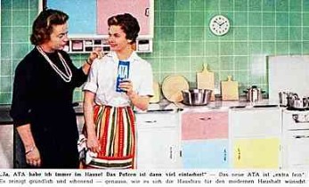 | | "Ja, ATA habe ich immer im Hause! Das Putzen ist dann viel einfacher! - "...genauso, wie es sich die Hausfrau für den modernen Haushalt wünscht!" (1959)