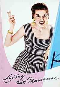 | | ...und aus Perlon ist auch der Strumpf, den Marianne soeben anstreift."