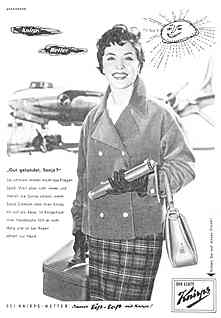 | |  | |  | | "Ohne seinen Herren-Knirps geht Karl Schönböck, der Kavalier des deutschen Films, nicht aus." (1956) | | "Bei Knirps-Wetter: Immer tip-top mit Knirps!", Sonja Ziemann (1956) | | ""Knirps-Wetter" bring Dieter Borsche nicht in Verlegenheit. Seine Frau sorgt schon dafür, daß er seinen Herren-Knirps nicht vergißt." (1956) |