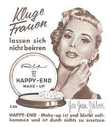 | |  | |  | | Riz "Happy-End Make-Up", Hildegard Knef (1952) | | Riz "Happy-End Make-Up" - "Schön u. glücklich wie Doris Day..." (1952) | | Riz "Happy-End Make-Up", Esther Williams (1952) |