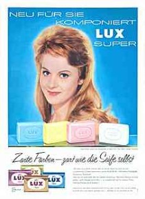 | | "Meine LUX ist mild und rein - so sanft belebt sie meinen Teint", Elke Sommer (1965) | | "Das Milde und Zarte an LUX - das ist es, was meinen Teint so behutsam pflegt!", Nadja Tiller (1966) |