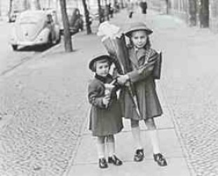 | | "Unsere neue Fibel" (1967) |  | | Auf dem Weg zur Schule - Privatfoto Sammlung Wirtschaftswundermuseum (um 1964) |  | |  | Äpfel, Apfelsinen, Schuhe, Sarotti-Schokolade: Geschenke zur Einschulung vor über 100 Jahren (Privatfoto, schätzungsweise um 1910)