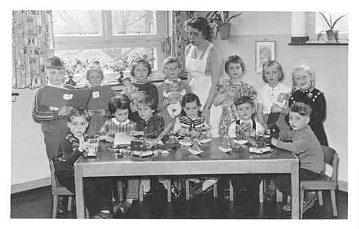 |  | |  | Kinder stellen sich in einer Reihe auf (um 1961)