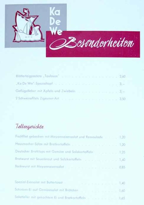 Speisekarte "Berliner Kindl Bräu", Berlin 1960