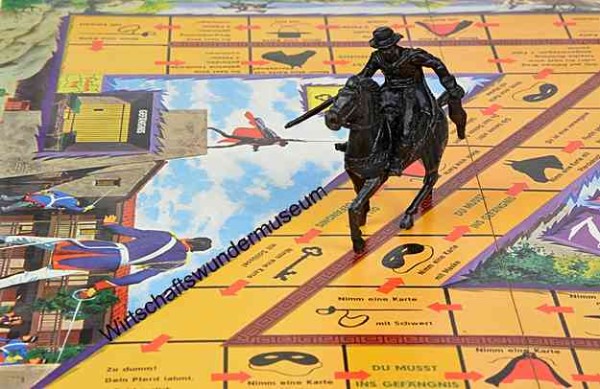 | "Zorro", ein Gesellschaftsspiel der Firma Klee zur Abenteuerserie von Walt Disney aus dem Jahr 1957. Der Clou ist die tolle Zorro-Spielfigur!