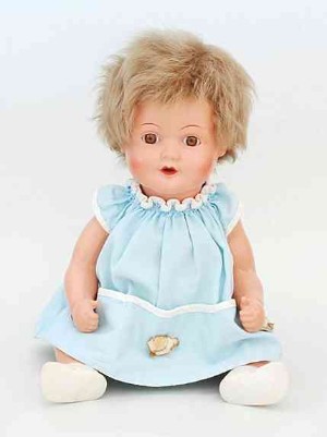 | |  | | "Helga" | | "Jennifer" | "Wertvoll" sind für mich nicht Puppen, die ein bestimmtes Markenemblem auf dem Rücken haben, sondern vor allem solche, zu denen noch Erinnerungen des ursprünglich damit spielenden Kindes zu erfahren sind. So bedanke ich mich ganz herzlich bei Brigitte für diese beiden hübschen Spielzeuge und folgenden Text: "Die Puppe rechts habe ich von meinem Opa bekommen. Der hat sie von seinem Stiefsohn, der in Amerika lebt, für mich mitgebracht. Ich habe sie Jennifer getauft. Die linke Puppe habe ich von meinem Vater bekommen, als wir mit bei den ersten Touristen nach Österreich fuhren u. von dort einen Ausflug nach Meran unternommen haben. Sie wurde auf dem Markt in Meran erstanden. Ich habe sie Helga getauft. Beide Puppen stammen aus den Jahren ca. 1957/58."