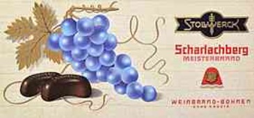 |  | |  | | Stollwerck - "Scharlachberg Meisterbrand Weinbrand-Bohnen" (1956) | | Suchard Jubiläum - "Hochfeine Sahne Schokolade"