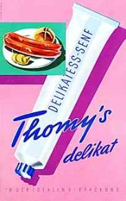 | |  | | Mondamin - "Sagen Sie beim Kauf nur "3x1 Pudding!" Dann bekommen Sie drei Puddinge in einer Packung - Vanille, Schokolade und Mandel-Dessert mit gehackten Mandeln - für 65 Pfennig." | | "Frische und Schwung gibt DEXTRO-ENERGEN" | | Pfanni Knödel "Spitzenleistung" |