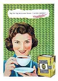 | | Jacobs Kaffee "wunderbar" - "Seit alters her schätzt man den mit Liebe bereiteten Kaffee." | | Jacobs Kaffee "wunderbar" - "Gut gewählt - gut geschenkt" | | "Tag für Tag Millionen Tassen "JACOBS KAFFEE" wunderbar" |