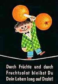 | | "Durch Früchte und durch Fruchtsalat bleibst Du Dein Leben lang auf Draht!" |