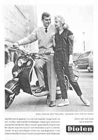 | | Diolen - "lieber heute als morgen" | | Diolen - "Junge Leute, die sich im Zwei- oder Viertakt fortbewegen, tragen gerne praktische, unempfindliche Sachen."