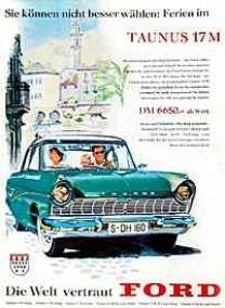 | FORD - "Sie können nicht besser wählen: Ferien im Taunus 17 M" | | FORD - "Die Welt wählte den Taunus 17 M" | | Taunus 17 M - Die Welt vertraut Ford" |