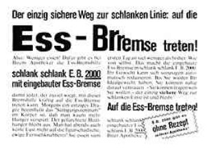 | |  | |  | | "Zucker zaubert - Gesund durch den Winter" (schätzungsweise um 1972) | | "Der einzig sichere Weg zur schlanken Linie: auf die Ess-Brremse treten!"