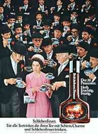 | |  | |  | | "Ich trinke Jägermeister, weil der Blick, den ich auf Evelyn warf, daneben traf." | | "Ich trinke Jägermeister, weil ich's dem Chef eben gezeigt habe - aber nicht das, was er eigentlich sehen wollte." | | Schlehenfeuer - "Für alle, die ihren Tee mit Schirm, Charme und Schlehenfeuer trinken." |