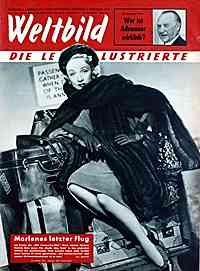 | | "Weltbild - DIE LESE-ILLUSTRIERTE" - Titel: "Marlenes letzter Flug auf Kosten der "20th Century-Fox-Film!" Wenn nämlich Marlene Dietrich ihren neuesten Film "Straße ohne Ende" in den englischen Ateliers der amerikanischen Firma beendet haben wird, werden diese Ateliers für immer geschlossen: "20th Century-Fox-Film" muß sparen, die Fernsehkonkurrenz ist zu stark." | | Quick - "Die aktuelle Illustrierte" - Titel: "Schmelings gefürchtete Rechte schützt diesmal nicht sich selbst, sondern "beschirmt" seine Gattin Anny Ondra. Sie filmt zum esrten Male wieder seit sieben Jahren in "Schön muß man sein" - und erneut begeistert sie durch grotesken Charme und mitreißende Lebendigkeit." | | "REVUE - die Weltillustrierte" - Titel: ""Auf ein friedliches 1952" - Hans Albers der ewig junge Draufgänger und große Kavalier des deutschen Films"