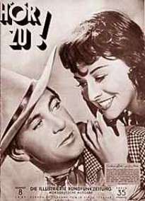 | |  | |  | Hör Zu! - Titel: "Cowboy-Liebe - große Mode", Gary Cooper und Madeleine Caroll, "Cowboy-Filme und Cowboy-Schlager sind große Mode. Vielleicht, weil unsere Zeit Sehnsucht nach einer urwüchsigen Vergangenheit hat, in der jeder Mann ein ganzer Kerl gewesen ist..."