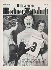 | | Illustrierte Berliner Zeitschrift - Titel: "Bravheit siegte diesmal - Aparte Schönheit fiel durch. Das Publikum bei der Wahl der "Miss Germany 1951" in Baden-Baden entschied sich für den biederen Typ des deutschen Mädchens." | | |