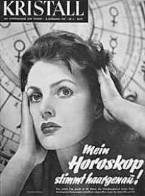 | | | | | | Kristall - Illustrierte für Unterhaltung und neues Wissen - Titel: "Mein Horoskop stimmt haargenau! Eine schöne Frau glaubt an die Sterne: die Filmschauspielerin Ursula Thieß." - Themen z.B.: "Mein schwarzes Baby", "Wollen sie heiraten? Haben Sie eine Chance?" | | | | |