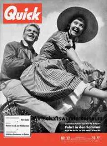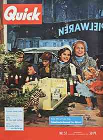 | | REVUE - Titel: "Heute beginnt Dr. Grzimeks Afrika-Bericht: Kein Platz für wilde Tiere" - Weiteres Thema z.B.: "Alarm auf Formosa" | | Quick - Titel: "Schauen Augen vom Mars auf uns?" - Themen z.B.: "Diskussion mit Familien-Minister Würmeling: "Können Gesetze die Moral heben?", Deutsche in der Fremdenlegion | | REVUE - Titel: "Als der große Regen kam... - Sonderbericht über die Hochwasserkatastrophe in Süddeutschland" |