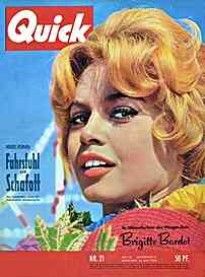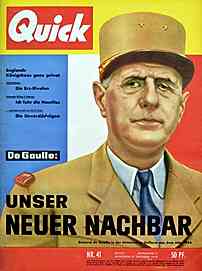 | | Quick - Titel: "De Gaulle: Unser neuer Nachbar" - Themen z.B.: "Die ersten großen Manöver - Die Bundeswehr im Schaufenster", "Sascha Distel - Für die neuverlobte Bardot: Ein klingendes Brautgeschenk"